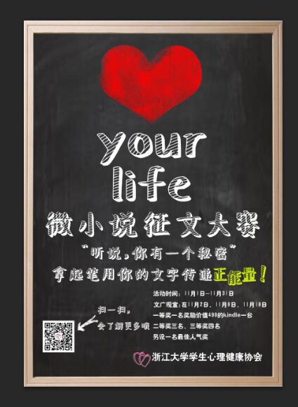 浙江大学学生心理健康协会希望借这次活动为你搭建一个平台,用文字唤醒那些人心底最纯朴的“自爱”的意识,传递“热爱生命”的正能量!
