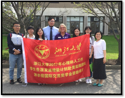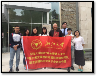 之后,一些同学又提出了朋辈工作者的培训方式等问题。Greg向我们介绍了康奈尔大学著名的EARS(Empathy, Assistance and Referral Service)项目,主要针对于朋辈咨询和培训的指导,对康奈尔大学全体成员(包括学生、教职工等)开放。学校会有专门的学生社团定期组织活动来宣传和普及各类心理健康知识,并获得了广泛的关注。最后,我们向Greg主任送上了浙大的纪念品,并在心理中心前合影留念。