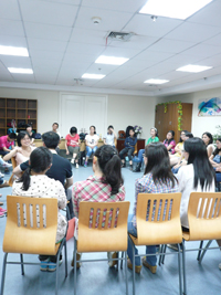 首先,大家围成一个圈,相互做了简单的自我介绍;并且每个人轮流用肢体动作,表达“心的天气”。